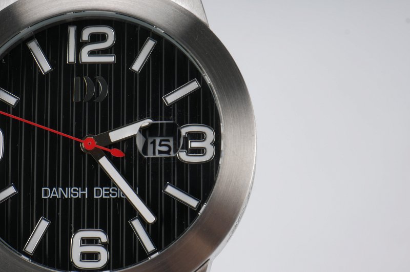 - Uret har datovisning, en lille hvid firkant, hvor dagen er vist med sorte tal.