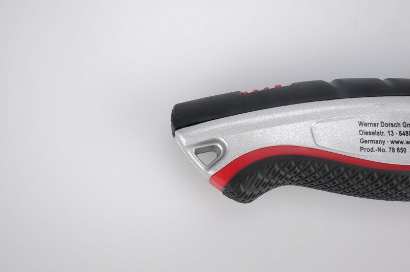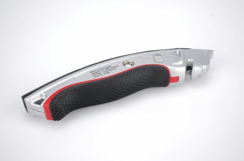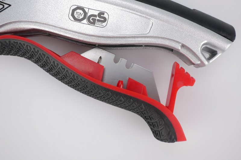 Med automatisk klingetilbagetrækning kan du arbejde sikkert og effektivt uden at bekymre dig om uønskede skader. Knivens trapezformede klinge er fjederbelastet og trækker sig automatisk tilbage, så snart den ikke længere er i kontakt med materialet. Udover den automatiske tilbagetrækning, kan klingen også skiftes til en 3-trins automatisk klingeudgang på 5 mm, 15 mm eller 25 mm. Med det ergonomisk formede metalhåndtag med grebszone i gummi, vil kniven ligge sikkert i din hånd.