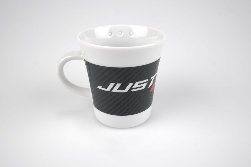 Bemærk de spøgefulde huller i siden! De sikrer, at du kan få koppen for dig selv, da kaffen vil vælte ud over din højrehåndede kollega hvis de forsøger at drikke fra dit venstrehåndede krus.